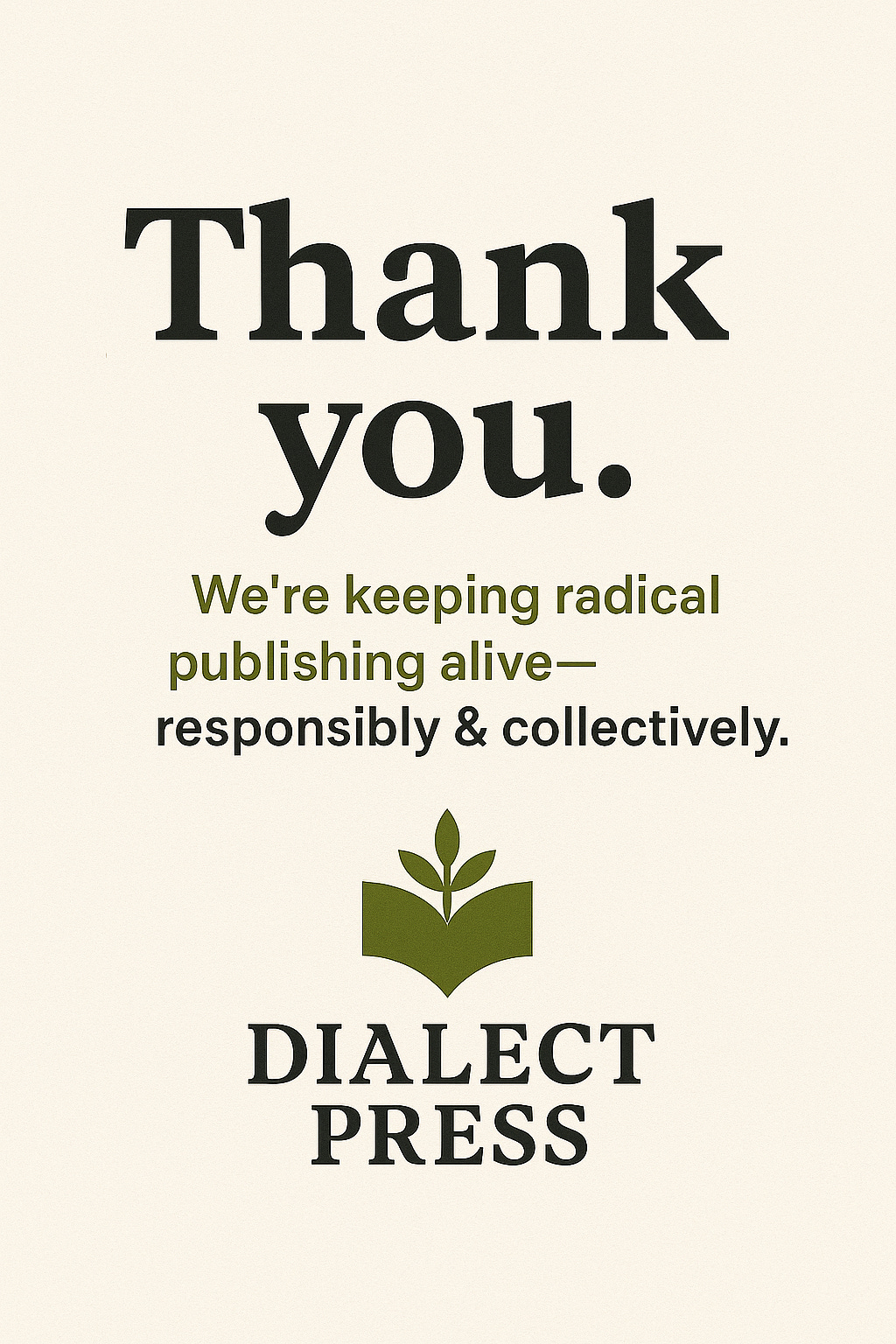 We never charge for submissions to Dialect Press, but please forgive us this little reminder about our current Crowdfunder seeking to raise funds for our publishing efforts. Dialect Press is a small, independent publisher with a big mission: to publish innovative, collaborative works while treading lightly on the planet. We’re committed to sustainable publishing methods, from recycled paper to ethical printing, and we champion voices that thrive in collective, cross-disciplinary creation. At present, we are 41% of the way towards our fundraising target with 14 days to go.