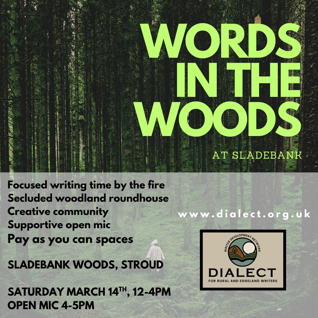 Book here: https://www.dialect.org.uk/coursesworkshops/words-in-the-woods-sladebank-stroud